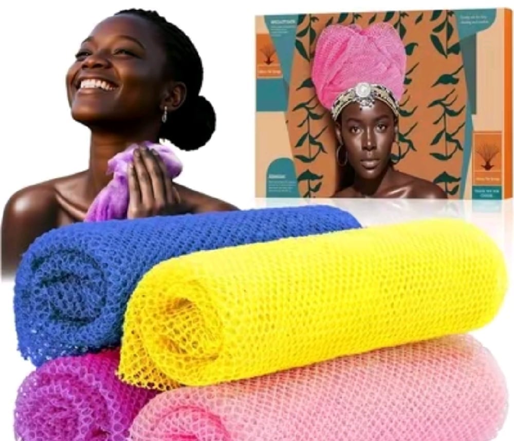 4-Piece African NET Sponge. Colors vary. Premium Quality. Exfoliation.. say less.. you're seen em all over.